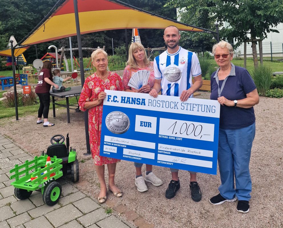 Die Hansa Stiftung möchte mit einer kleinen finanziellen Hilfe dieses Projekt unterstützen. Neben einem Spendenscheck hatte Pascal aber auch noch 30 Solitickets für das Spiel Marteria vs. Paule am 05.09.25 im Gepäck.