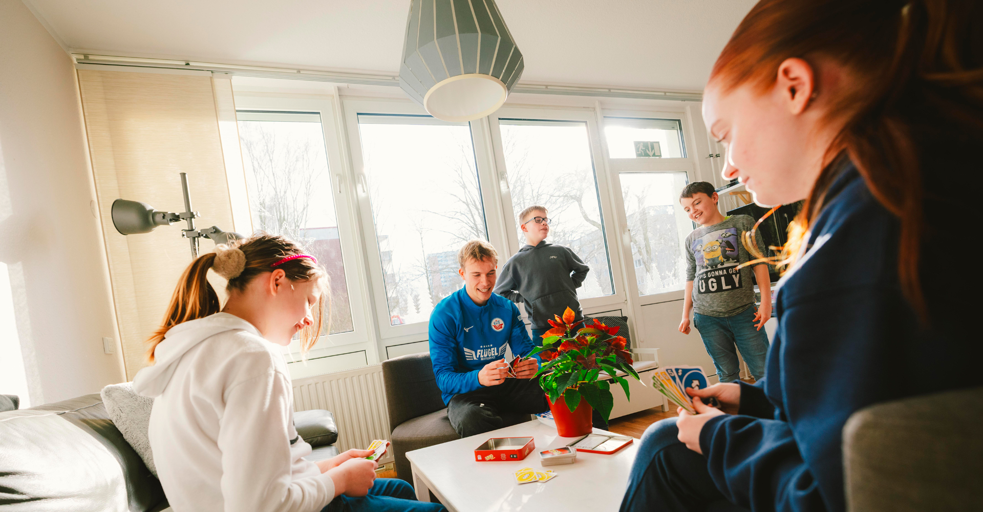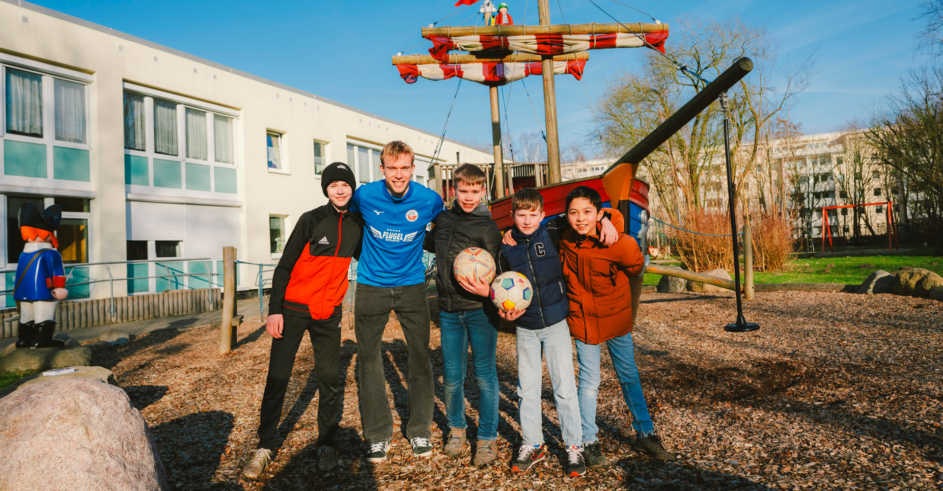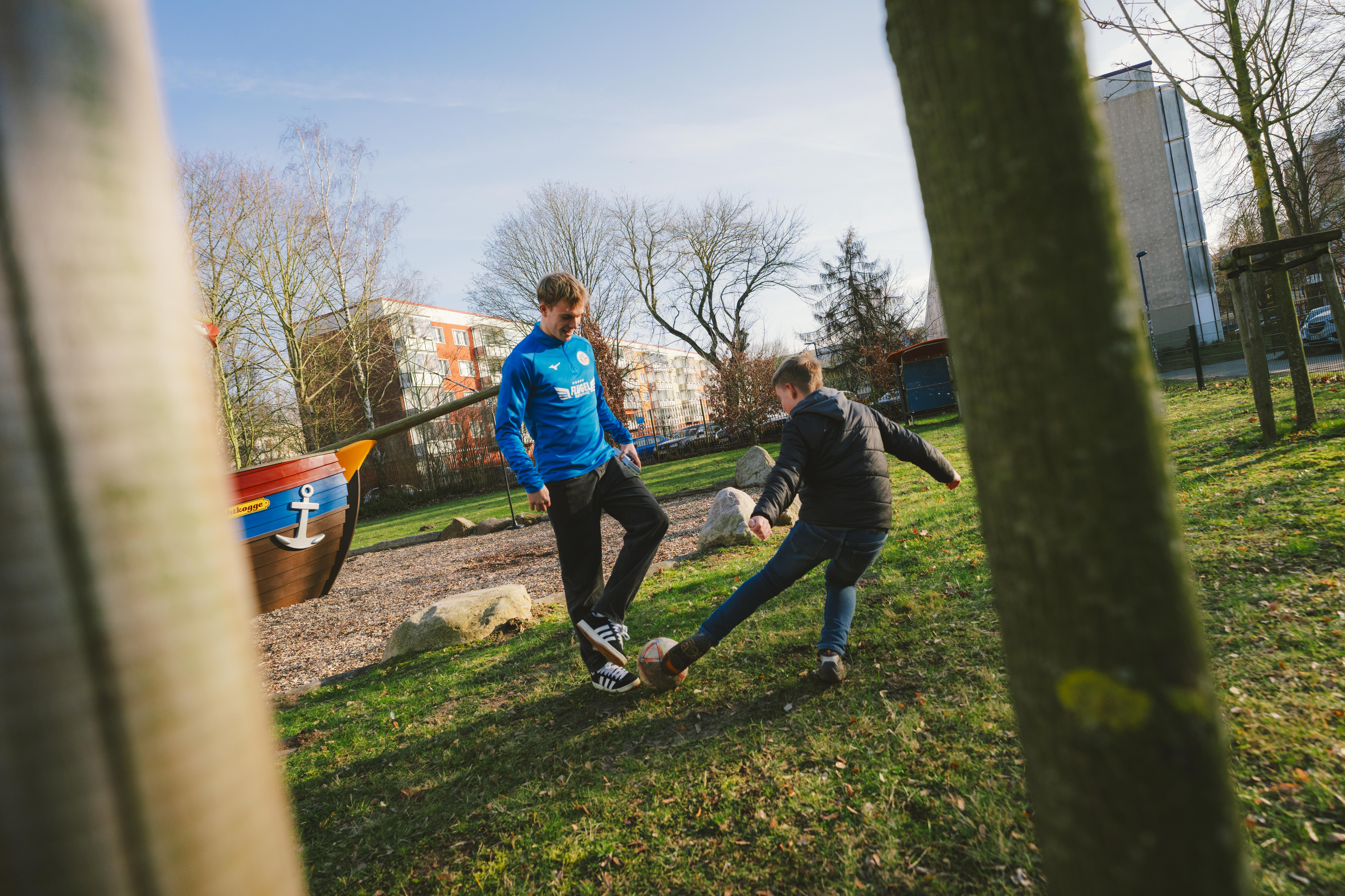 Voller Ungeduld erwarteten die Kinder des Jugendhilfeverbundes "Blinkfeuer" die Ankunft des Hansa-Profis. Die Zimmer waren perfekt aufgeräumt und die Fussballschuhe geputzt. Nachdem die Leiterin, Anja Kahl, die Einrichtung und das Konzept des "Blinkfeuer" vorgestellt hatte, gehörte Felix für fast zwei Stunden voll und ganz den Kindern.