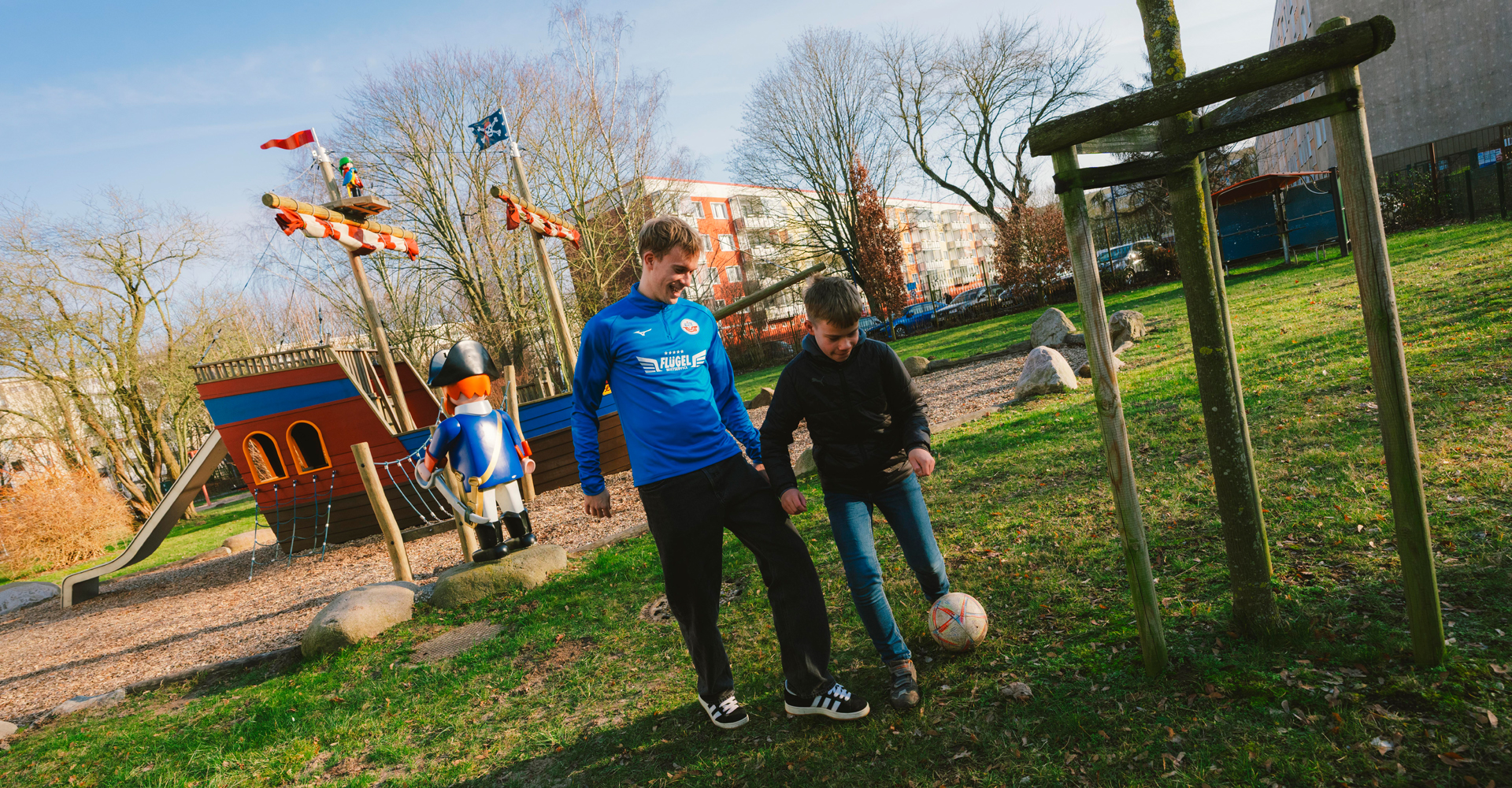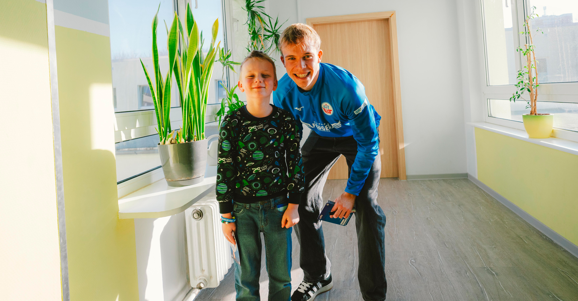 Am trainingsfreien Tag auf die faule Haut legen? Das ist nichts für Felix Ruschke! Gemeinsam mit Hansa-Vorstand Michael Meier besuchte unser Stiftungspate "Ruschi" sein Leuchtturmprojekt.