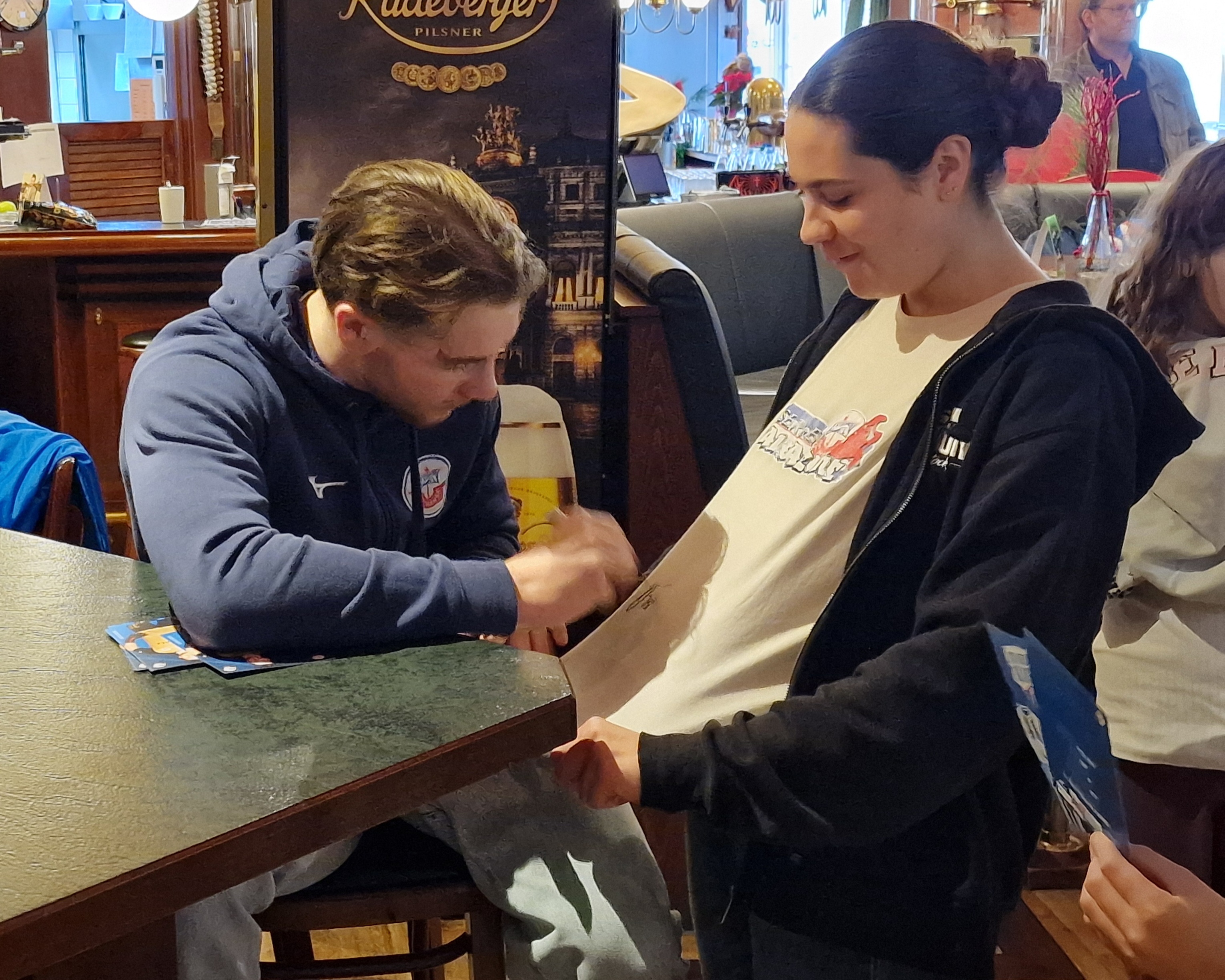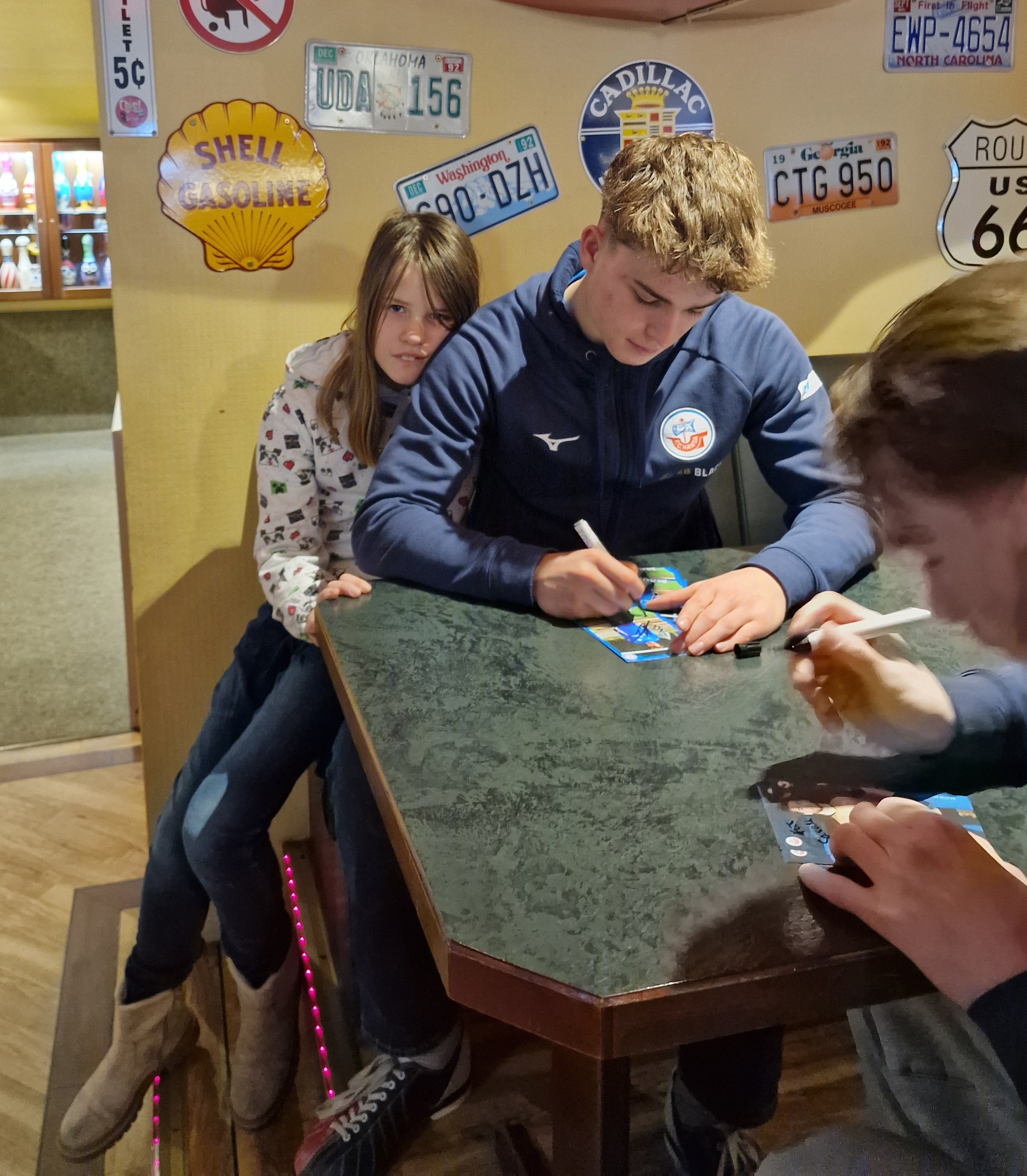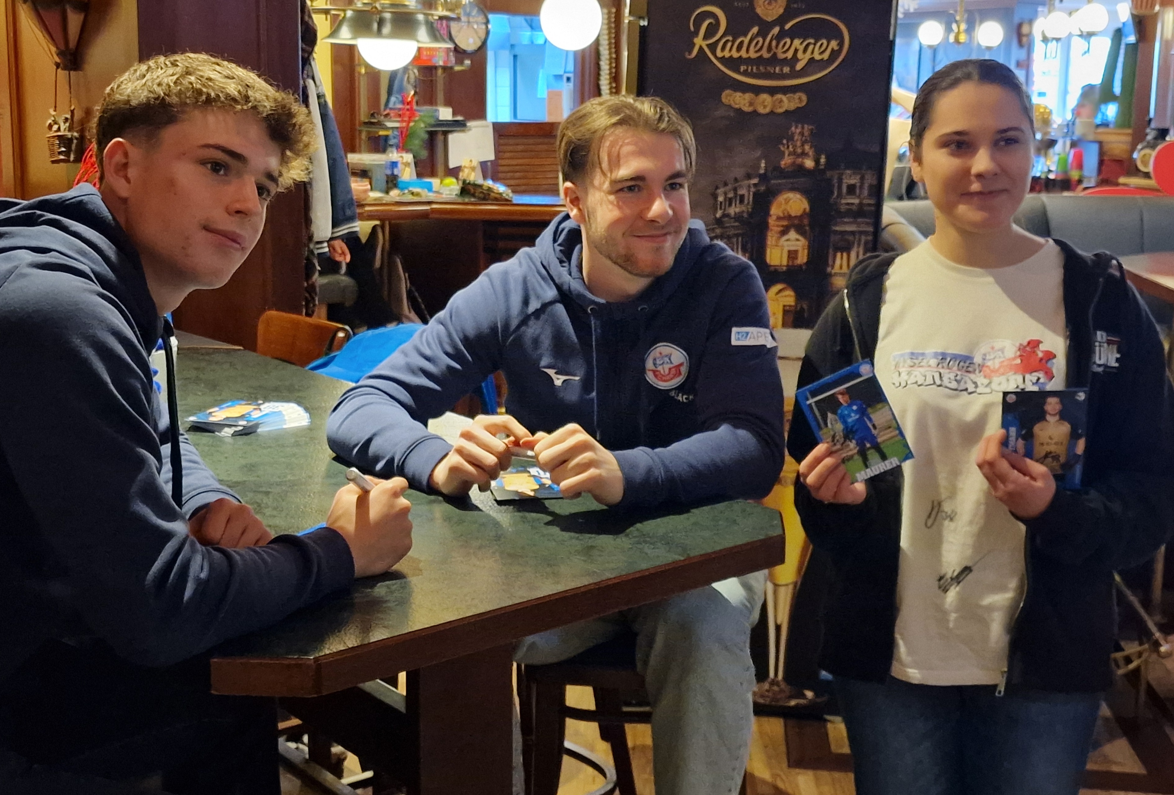 Es wurde gemeinsam über viele „Strikes“ und „Spares“ gejubelt und natürlich auch über den Fußball und den F.C. Hansa gefachsimpelt. Nach dem Bowling konnten es sich alle bei Speis und Trank so richtig gut gehen lassen. Zum Abschluss bekam jedes Kind ein persönliches Autogramm und für die ganz „Lütten“ hatte der Weihnachtsmann noch einen Hansa-Schneemann mitgebracht. Vielen Dank an Oma Vera (88 Jahre!), die die Schneemänner für die Kinder gehäkelt hat!